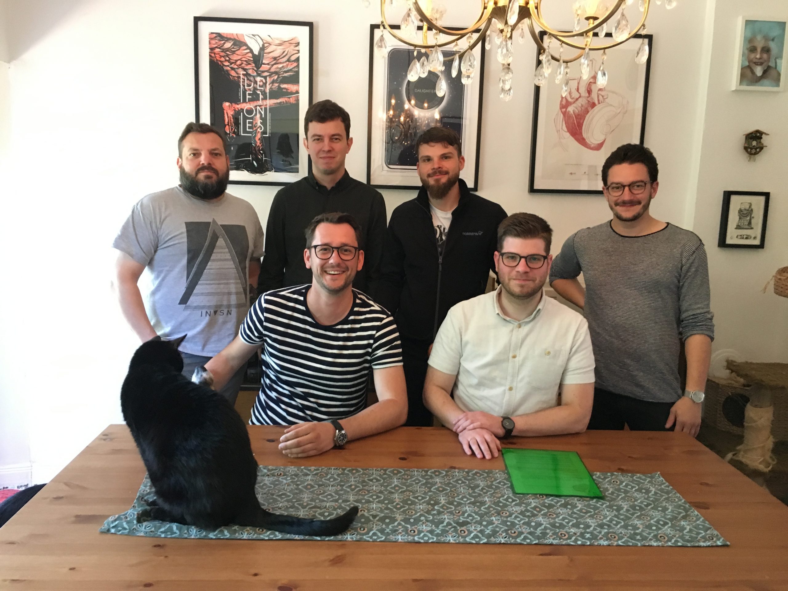 Auf dem Foto sieht man die fröhlichen Gesichter bei der Vertragsunterzeichnung. Kater Siegfried war das jedoch alles schnuppe, während sich Labelhund Rocky (hinter dem Kater) freudig kraulen ließ.